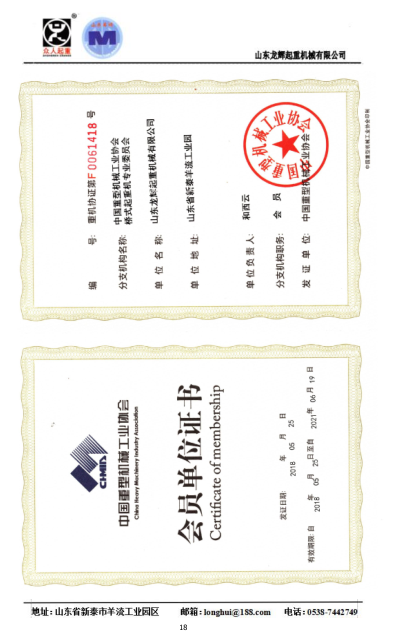 | 發(fā)證機(jī)構(gòu): | 中國(guó)重型機(jī)械工業(yè)協(xié)會(huì) | 發(fā)證時(shí)間 : | 2018-05-25 |