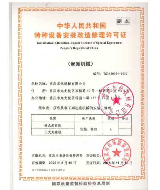 | 發(fā)證機(jī)構(gòu): | 重慶市市場監(jiān)督管理局 | 發(fā)證時間 : | 2018-11-16 |
