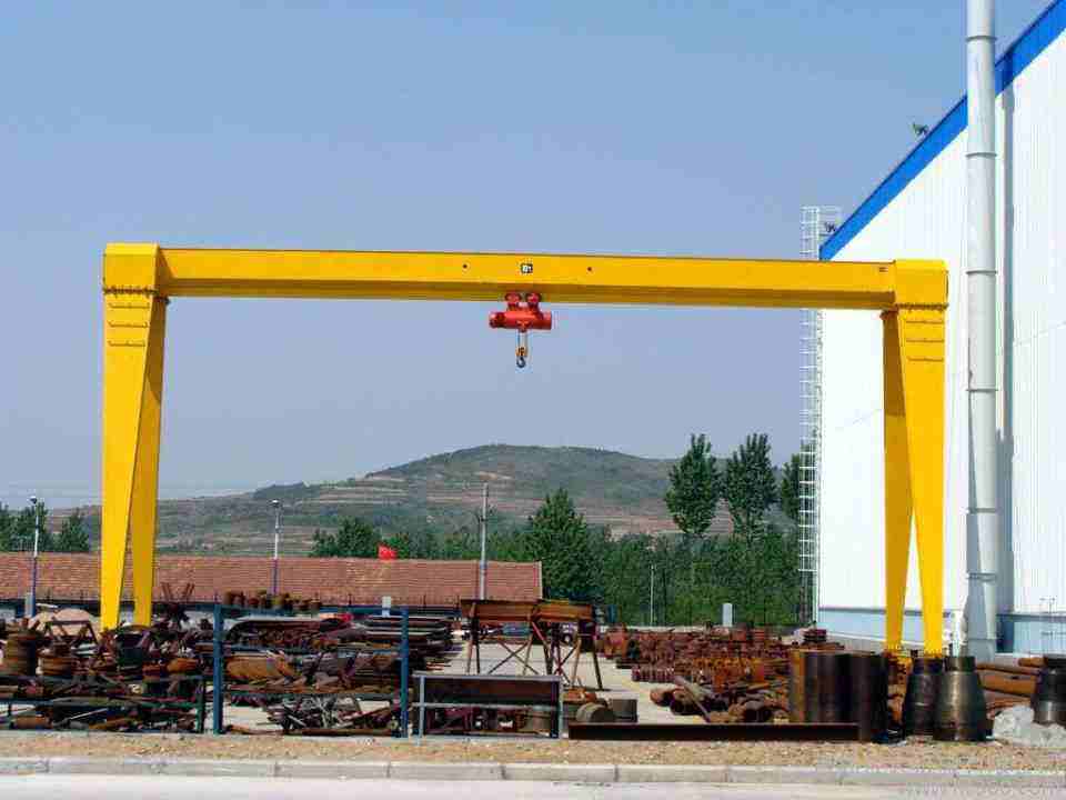 電動(dòng)單梁龍門(mén)吊型號(hào)為MH型,配套CD單速、MD雙速、HC方形等型號(hào)的電動(dòng)葫蘆使用,是一種有軌運(yùn)行的中小型龍門(mén)吊,其適用起重量為1t-20噸,適用跨度為12M-30米,工作環(huán)境為-20℃-+40℃。