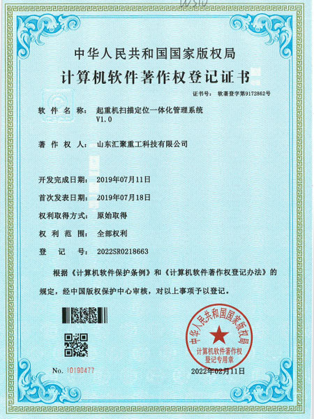 » 起重機掃描定位一體化管理系統(tǒng) V1.0(自動化證書)