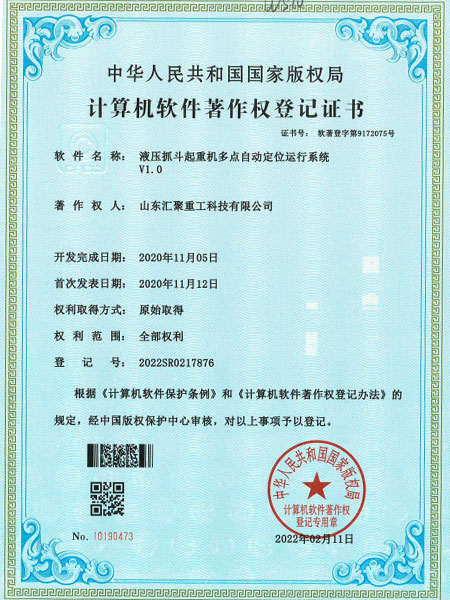 液壓抓斗起重機多點自動定位運行系統(tǒng) V1.0(自動化證書)