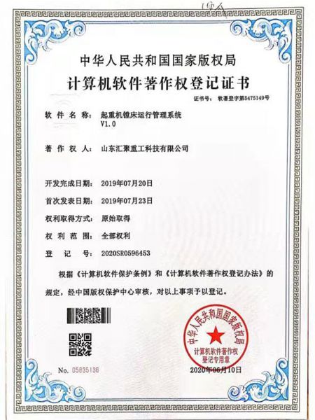 榮譽(yù)資質(zhì) 起重機(jī)鏜床運(yùn)行管理系統(tǒng) V1.0