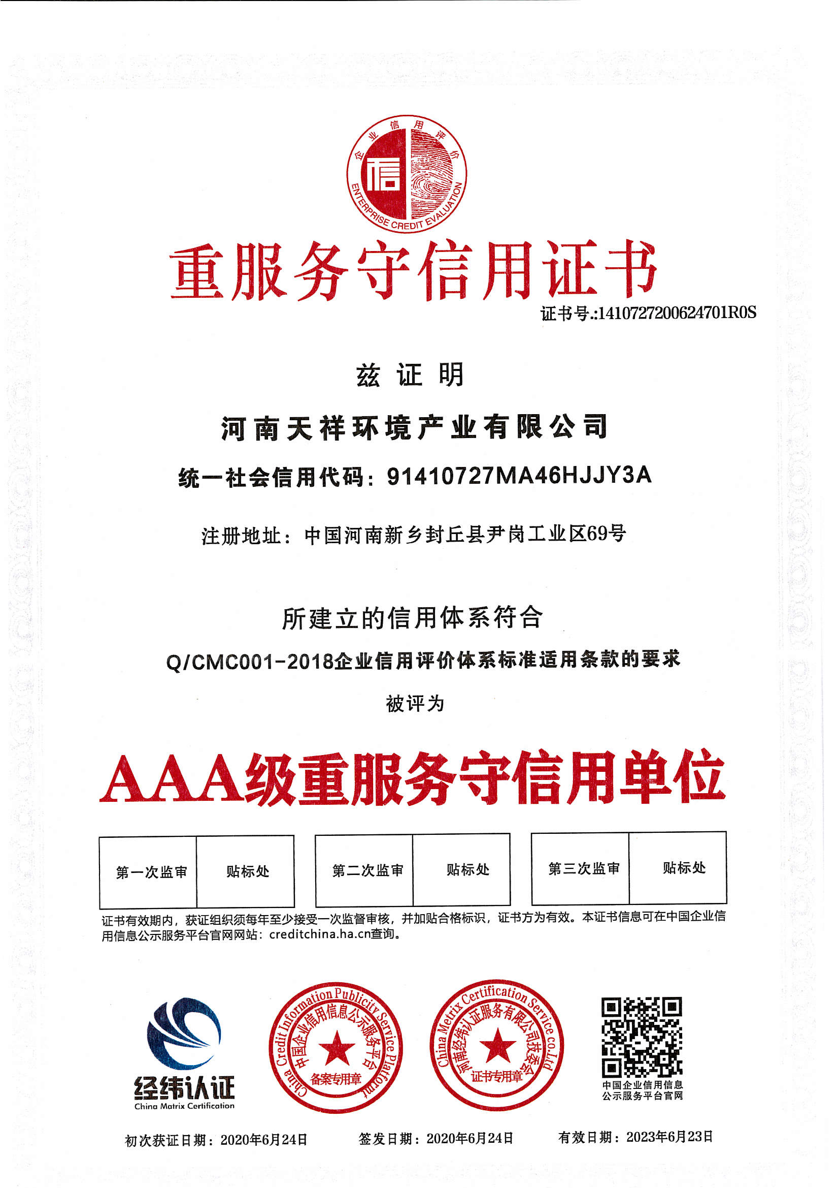 | 發(fā)證機(jī)構(gòu): | 第三方信用評(píng)級(jí)機(jī)構(gòu) | 發(fā)證時(shí)間 : | 2020-06-24 |