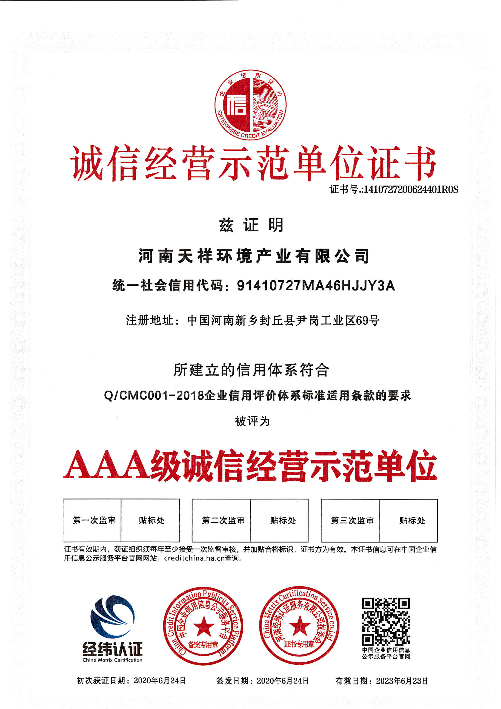 | 發(fā)證機(jī)構(gòu): | 第三方信用評級機(jī)構(gòu) | 發(fā)證時間 : | 2020-06-24 |
