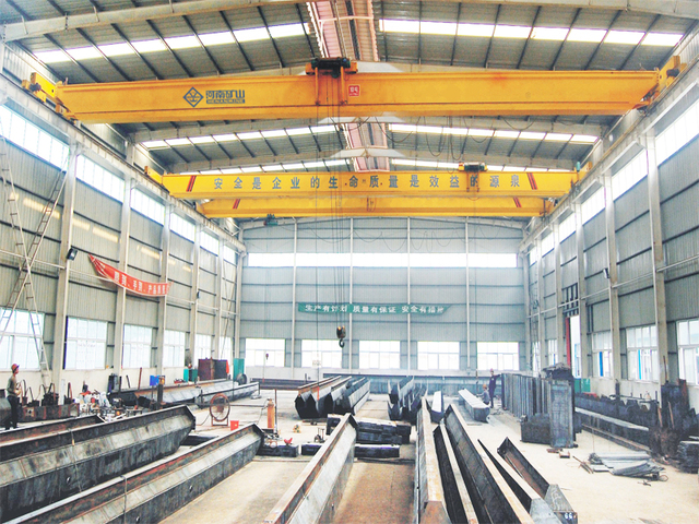 該產(chǎn)品采用四梁四軌雙小車結(jié)構(gòu)型式,主體結(jié)構(gòu)在垂直及水平載荷作用下,具有很好的強(qiáng)度和剛度。大車車輪采用20輪布置方式,力學(xué)模型簡(jiǎn)單,輪壓分布均衡,可有效降低廠房鋼結(jié)構(gòu)造價(jià)。 整機(jī)采用調(diào)速控制系統(tǒng),運(yùn)行平穩(wěn)、安全,起、制動(dòng)沖擊小,同時(shí)起升調(diào)速裝置采用一用一備系統(tǒng),當(dāng)一套裝置發(fā)生故障時(shí),可實(shí)現(xiàn)安全、快速切換,保證起升系統(tǒng)正常運(yùn)行。 車輪組采用新系列標(biāo)準(zhǔn)45°剖分式鍛造車輪,具有承載能力高、防塵、使用壽命長(zhǎng)、更換維護(hù)方便等特點(diǎn)。