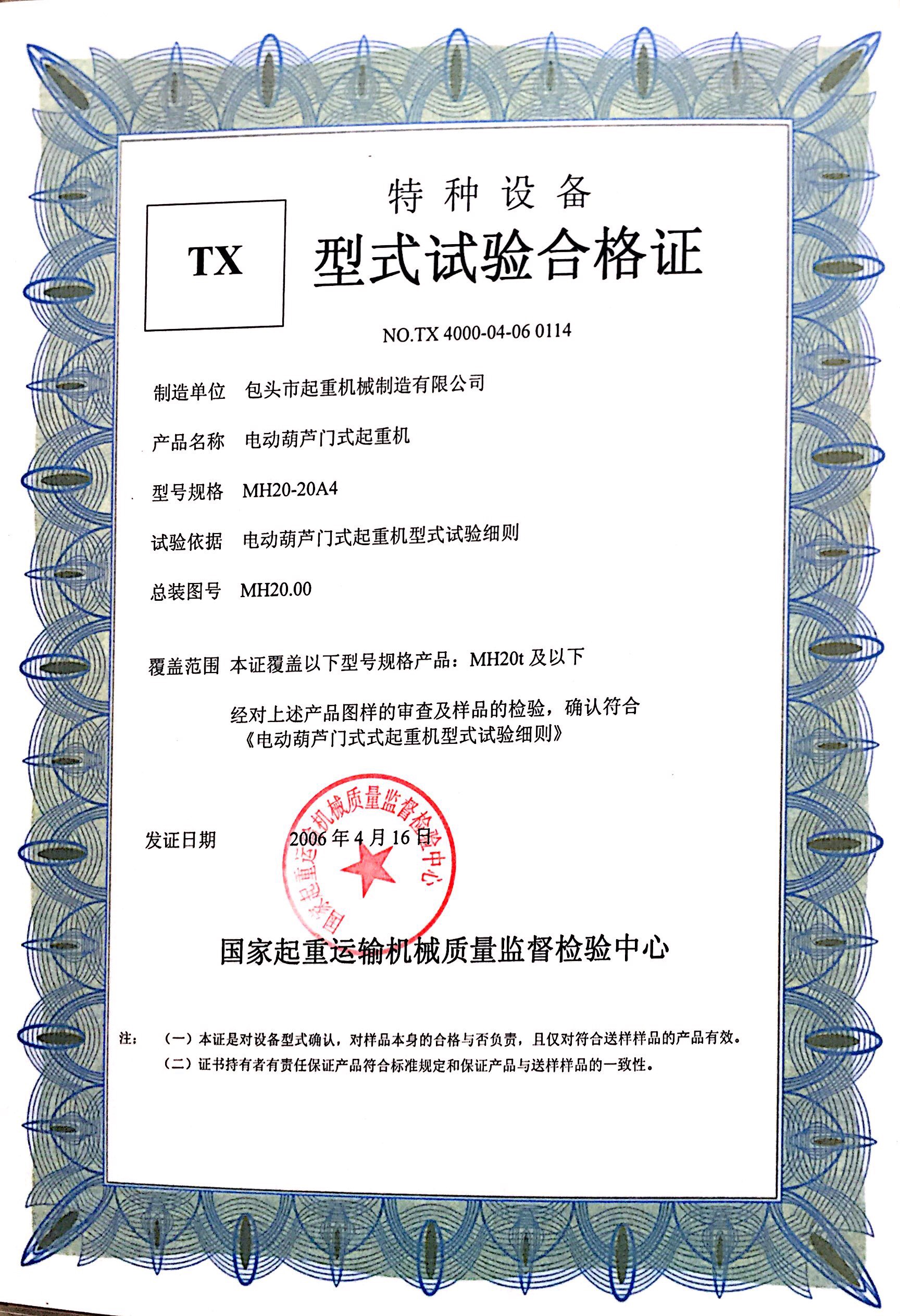 » 特種設(shè)備型式試驗合格證