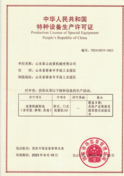 榮譽(yù)資質(zhì) 起重機(jī)械制造