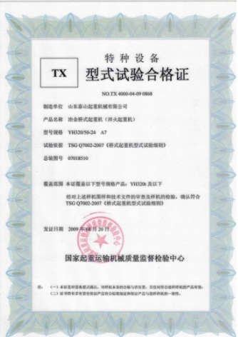 榮譽(yù)資質(zhì) 冶金式起重機(jī)(淬火起重機(jī))