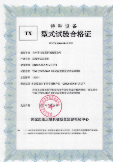榮譽(yù)資質(zhì) 防爆橋式起重肌