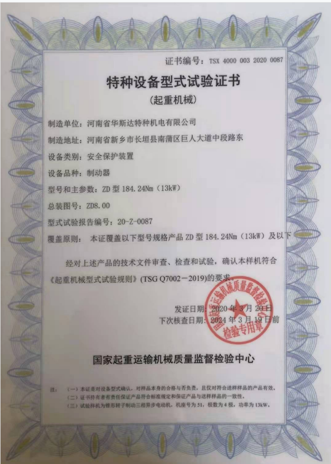 | 發(fā)證機(jī)構(gòu): | 國(guó)家起重運(yùn)輸機(jī)械質(zhì)量監(jiān)督檢驗(yàn)中心 | 發(fā)證時(shí)間 : | 2020-03-20 |
