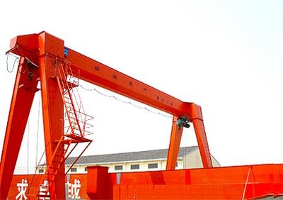 它的金屬結(jié)構(gòu)像門形框架,承載主梁下安裝兩條支腳,可以直接在地面的軌道上行走,主梁兩端可以具有外伸懸臂梁。