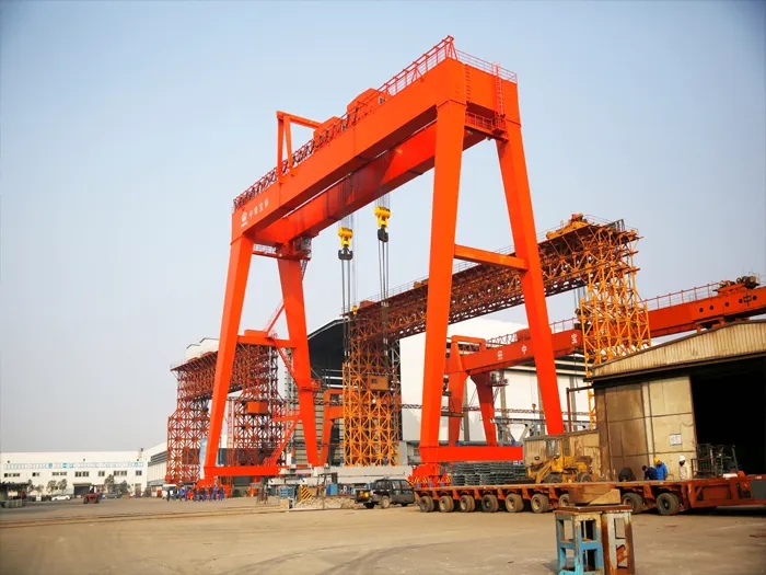 門式起重機(又稱龍門起重機)是橋架通過兩側支腿支撐在地面軌道上的