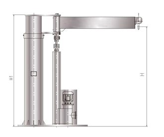 該機(jī)旋臂的回轉(zhuǎn)靠人手拉動旋臂回轉(zhuǎn);重物的升降由電動推桿帶動活動立柱在固定立柱內(nèi)上下滑動來實(shí)現(xiàn)。電動推桿內(nèi)設(shè)有過載自動保護(hù)裝置,當(dāng)起吊重量超過額定推力一定數(shù)值時(shí),推桿則自動停機(jī),從而起到過載保護(hù)的作用,使電機(jī)及構(gòu)件不致?lián)p壞。推桿外部安裝了防爆行程開關(guān),用戶可根據(jù)需要調(diào)節(jié)行程大小,以控制推桿正常啟動和停止。