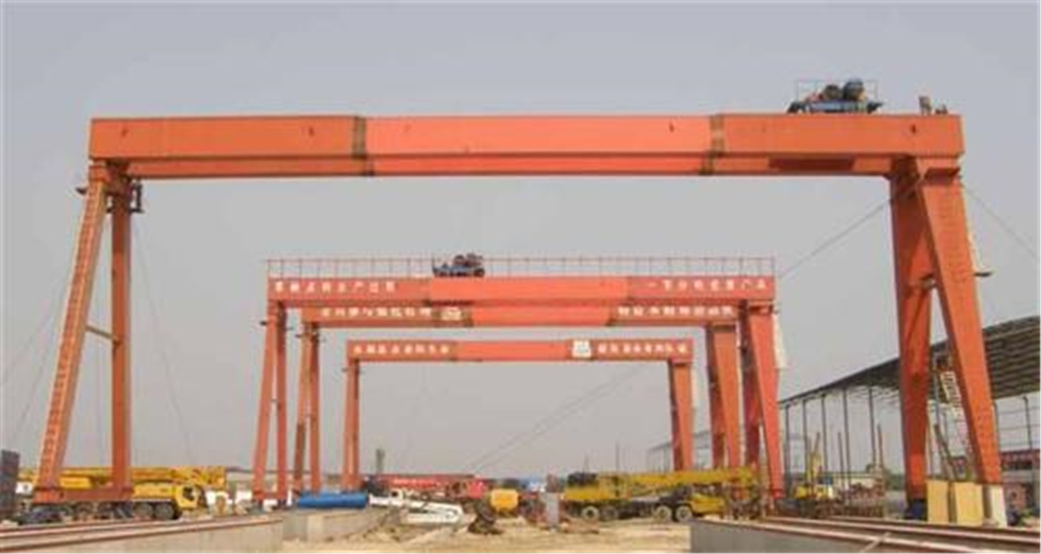 龍門起重機(jī)的起升機(jī)構(gòu)、小車運(yùn)行機(jī)構(gòu)和橋架結(jié)構(gòu),龍門起重機(jī)廠家,與橋式起重機(jī)基本相同。由于跨度大,起重機(jī)運(yùn)行機(jī)構(gòu)大多采用分別驅(qū)動(dòng)方式,龍門起重機(jī)廠家,以防止起重機(jī)產(chǎn)生歪斜運(yùn)行而增加阻力,龍門起重機(jī)廠家,甚至發(fā)生事故。龍門起重機(jī)的起重小車在橋架上運(yùn)行,有的起重小車就是一臺(tái)臂架型起重機(jī)。橋架兩側(cè)的支腿一般都是剛性支腿;跨度超過30米時(shí),常是一側(cè)為剛性支腿,而另一側(cè)通過球鉸和橋架連接的柔性支腿,使門架成為靜定系統(tǒng),這樣可以避免在外載荷作用下由于側(cè)向推力而引起附加應(yīng)力,也可補(bǔ)償橋架縱向的溫度變形龍門起重機(jī)的受風(fēng)面積大,為防止在強(qiáng)風(fēng)作用下滑行或翻倒,裝有測(cè)風(fēng)儀和與運(yùn)行機(jī)構(gòu)聯(lián)鎖的起重機(jī)夾軌器。橋架可以是兩端無(wú)懸臂的;也可以是一端有懸臂或兩端都有懸臂的,以擴(kuò)大作業(yè)范圍。半龍門起重機(jī)橋架一端有支腿,另一端無(wú)支腿,直接在高臺(tái)架上運(yùn)行。