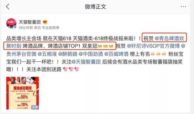 樂收生意寶訊:天貓酒類618戰(zhàn)報公布,黑馬青島啤酒表現(xiàn)亮眼