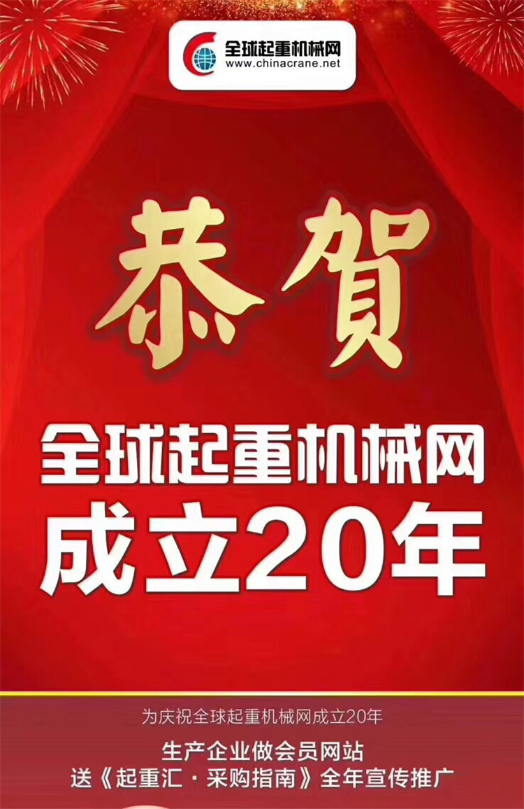 • 官宣!《起重匯·采購(gòu)指南》總第20期圓滿收官!官宣!《起重匯采購(gòu)指南》總第20期圓滿收官!感謝新老客戶的支持,感謝全體同事的付出,感謝在最美的時(shí)光我們彼此相遇! 因?yàn)橄嘈?,所有一切都變得更有意義! 2020抱團(tuán)抗風(fēng)浪,攜手贏未來,風(fēng)雨同舟,我們同行! 好產(chǎn)品推廣聯(lián)系:13683732114好...[詳情]