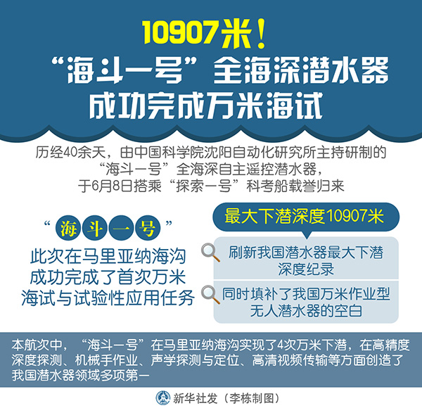 移動版:10907米!“海斗一號”全海深潛水器成功完成萬米海試