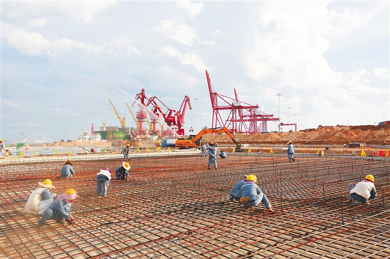 日前,海南自貿(mào)港洋浦經(jīng)濟開發(fā)區(qū)內(nèi)的海南煉化年產(chǎn)100萬噸乙烯項目配套碼頭沉箱預(yù)制場,現(xiàn)場施工火熱。該預(yù)制場于5月動工,目前正進行基礎(chǔ)設(shè)施施工,下月投入使用后將為項目建設(shè)提供有力支持。海南日報記者 陳元才 攝
