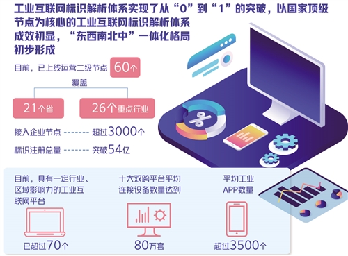我國工業(yè)互聯(lián)網(wǎng)經(jīng)過3年起步期發(fā)展,產(chǎn)業(yè)發(fā)展環(huán)境持續(xù)優(yōu)化,基礎(chǔ)設(shè)施加速推進,融合應(yīng)用走深向?qū)崳a(chǎn)業(yè)規(guī)模持續(xù)增長,對經(jīng)濟社會的發(fā)展帶動效應(yīng)顯著增強。目前,5G+工業(yè)互聯(lián)網(wǎng)正加速向企業(yè)生產(chǎn)核心環(huán)節(jié)延伸,標識注冊總量已突破54億,進入工業(yè)互聯(lián)網(wǎng)平臺的工業(yè)設(shè)施已達4000多萬臺。