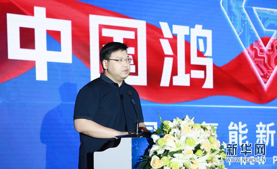 國鴻氫能總經(jīng)理陳曉敏在發(fā)布會(huì)上致辭。新華網(wǎng)發(fā)