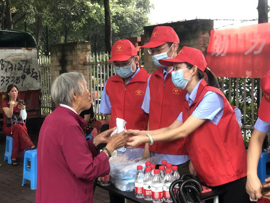 圖為中建交通四川公司志愿者在為孤寡老人發(fā)放防疫用品等。