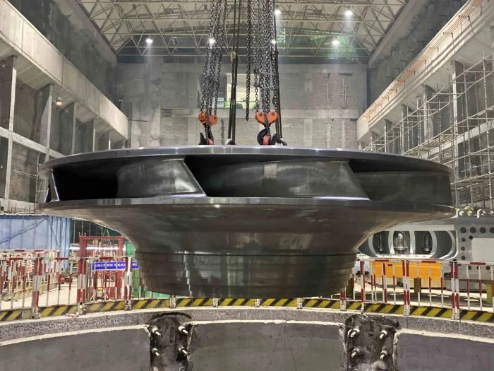 轉(zhuǎn)輪吊裝工作順利完成,標(biāo)志著2號機(jī)組正式進(jìn)入水泵水輪機(jī)總裝階段,后續(xù)將根據(jù)施工進(jìn)度開展導(dǎo)水機(jī)構(gòu)安裝、定子吊裝和轉(zhuǎn)子吊裝等工作,計(jì)劃2021年下半年完成安裝調(diào)試并投產(chǎn)運(yùn)行。