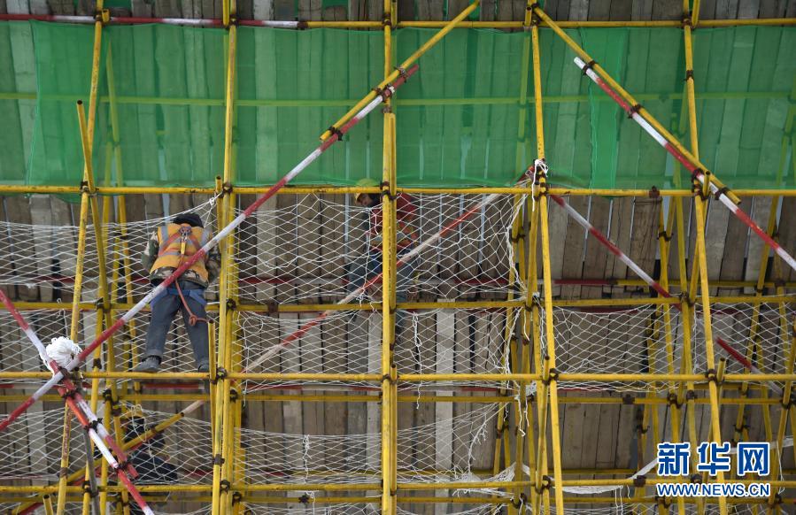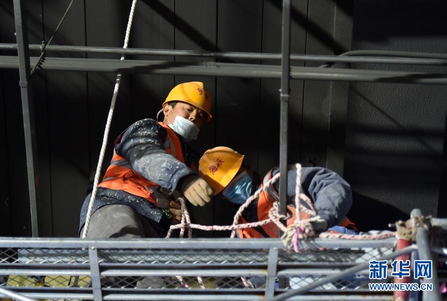 1月7日,建設(shè)者在天津國(guó)家會(huì)展中心工地上施工。 新華社發(fā)(趙子碩 攝)