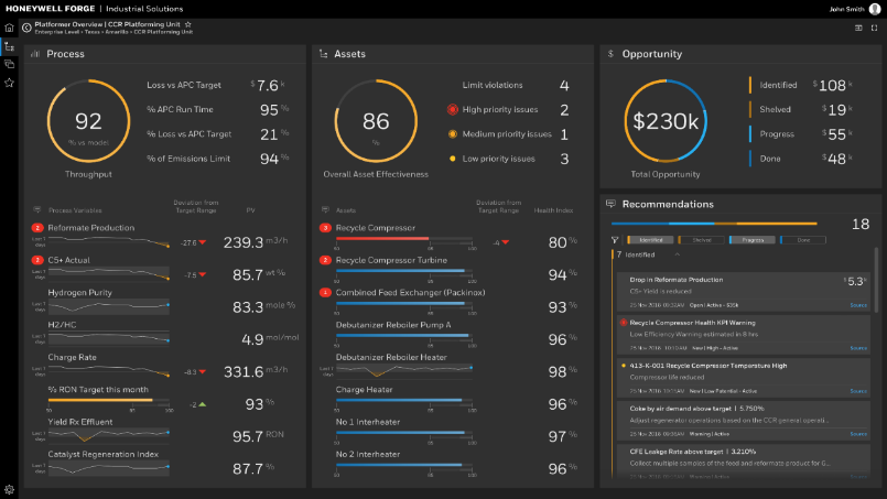 在生產(chǎn)過程和設(shè)備關(guān)聯(lián)的基礎(chǔ)上,霍尼韋爾智能工廠解決方案能夠部署在云端或當(dāng)?shù)財?shù)據(jù)中心,為客戶提供基于設(shè)備與過程的智能分析,該解決方案把煉油流程的實時機理模型,運用到了智能工廠里面,幫助客戶更加直觀、高效地了解工廠的操作優(yōu)化路徑。
