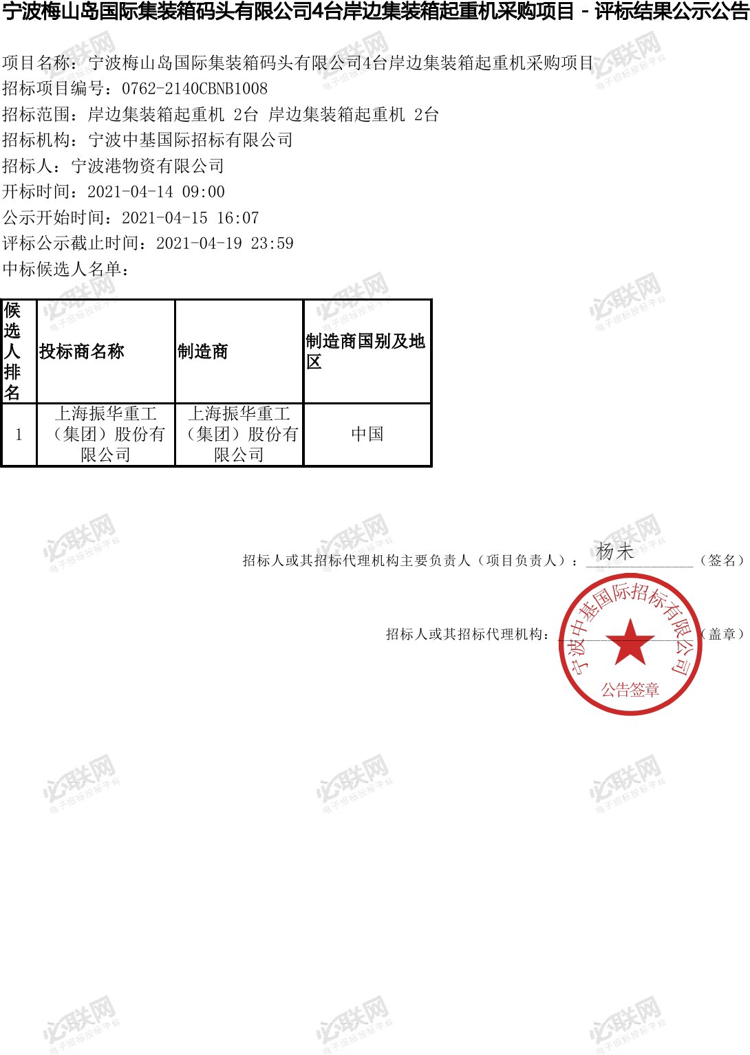移動(dòng)版:浙江:4臺(tái)岸邊集裝箱起重機(jī)采購項(xiàng)目中標(biāo)公告
