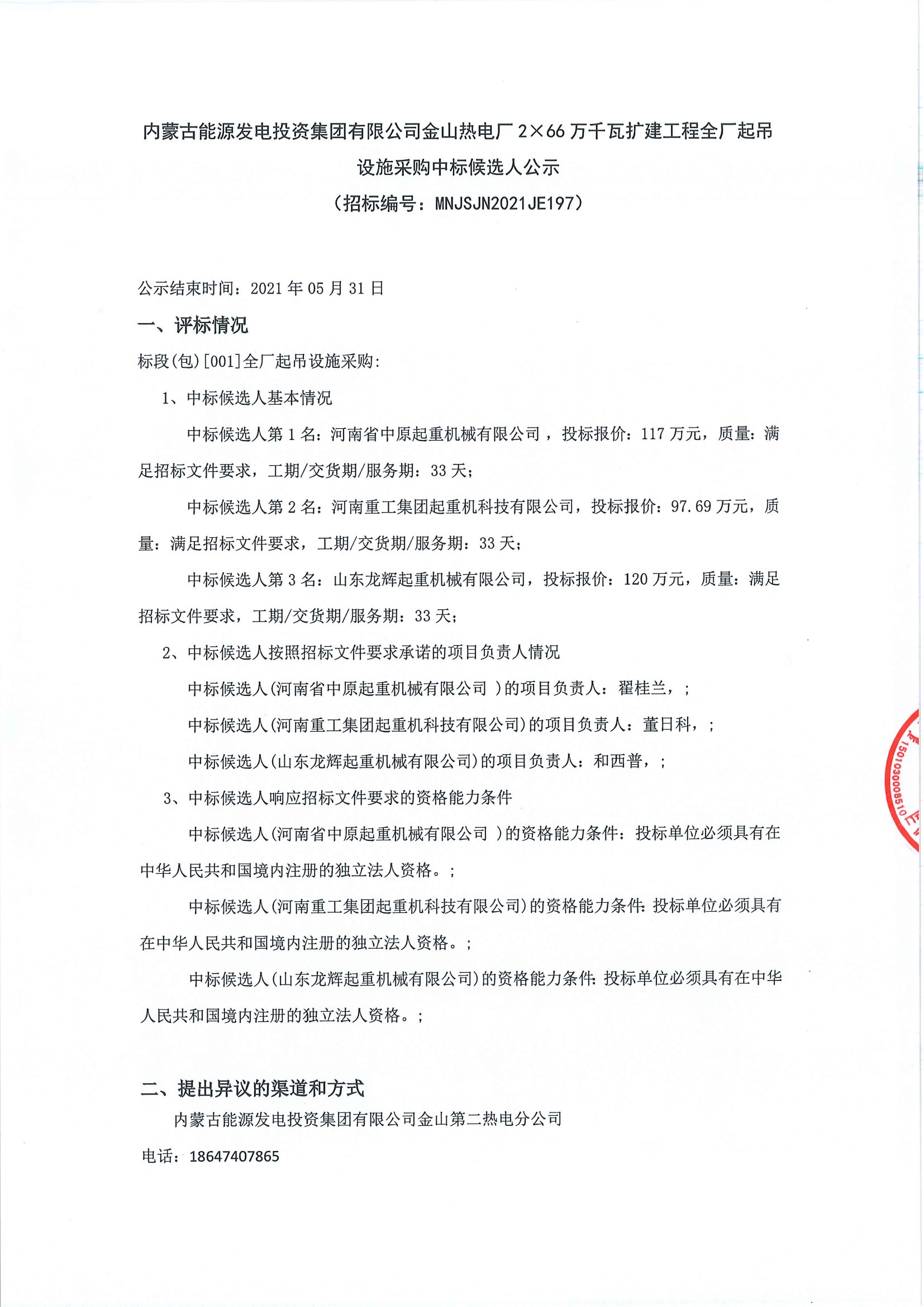 移動(dòng)版:內(nèi)蒙古:金山熱電廠2times66萬千瓦擴(kuò)建工程全廠起吊設(shè)施采購(gòu)中標(biāo)候選人公示