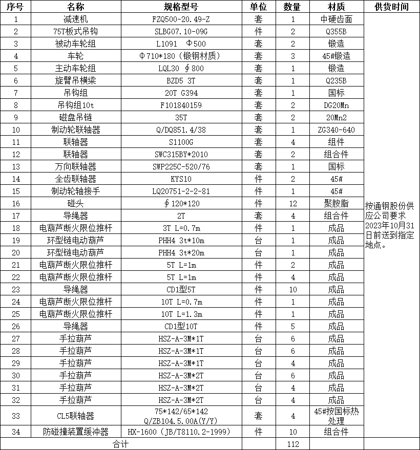 項(xiàng)目名稱: 起重機(jī)備件