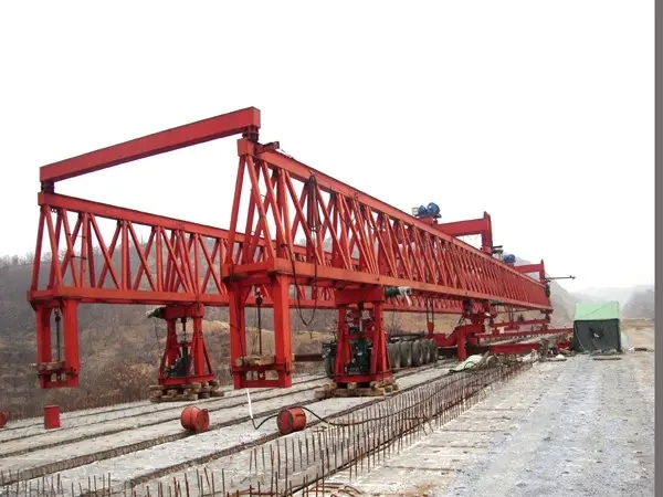 架橋機(jī)**是將預(yù)制好的梁片放置到預(yù)制好的橋墩上去的設(shè)備。架橋機(jī)屬于起重機(jī)范疇,因?yàn)槠渲饕δ苁菍⒘浩崞?,然后運(yùn)送到位置后放下。
